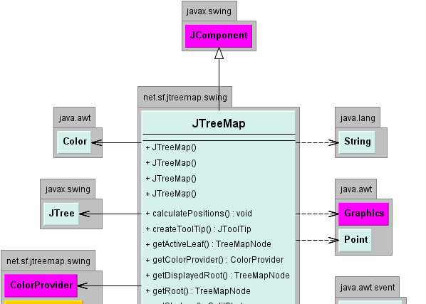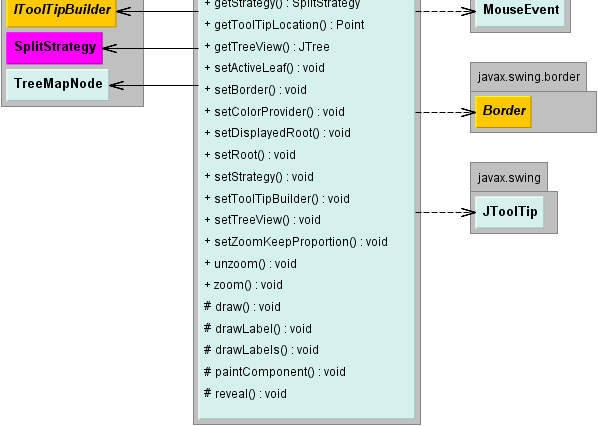 JComponent who represents each element of a tree in a rectangle of more or less big size according to its importance in the tree.